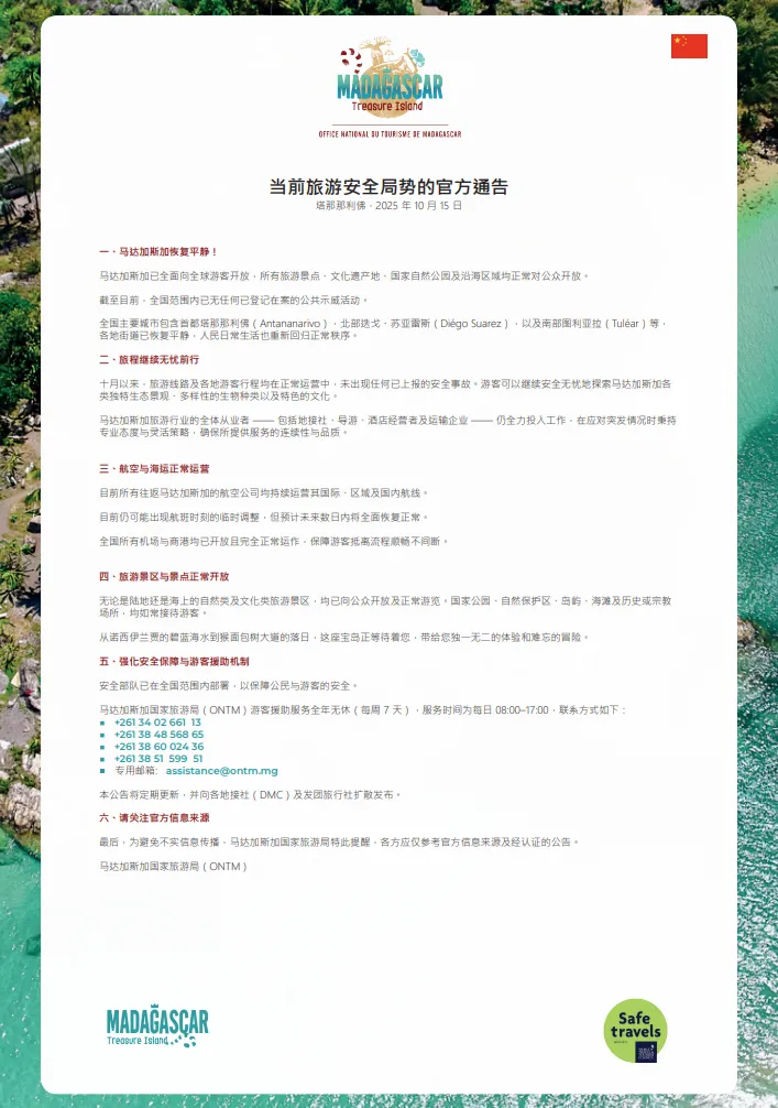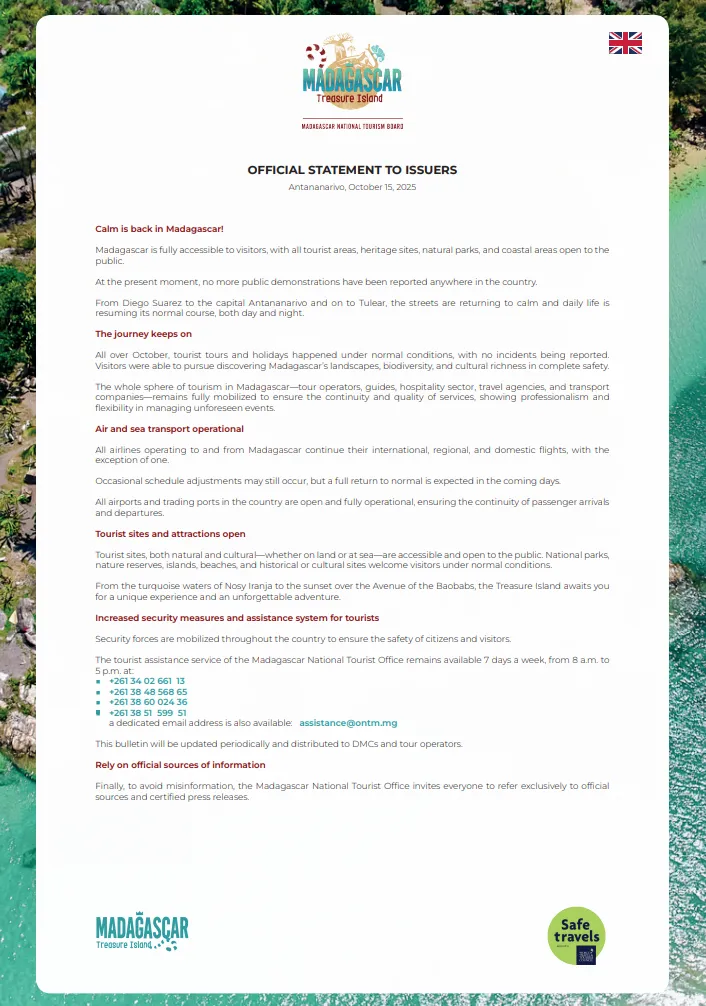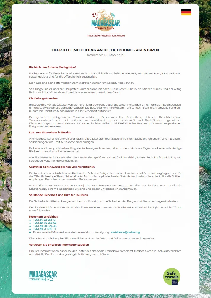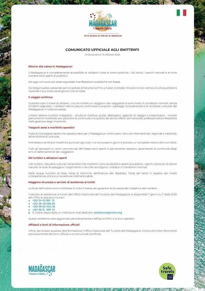 Official communication on the tourist security situation in Madagascar